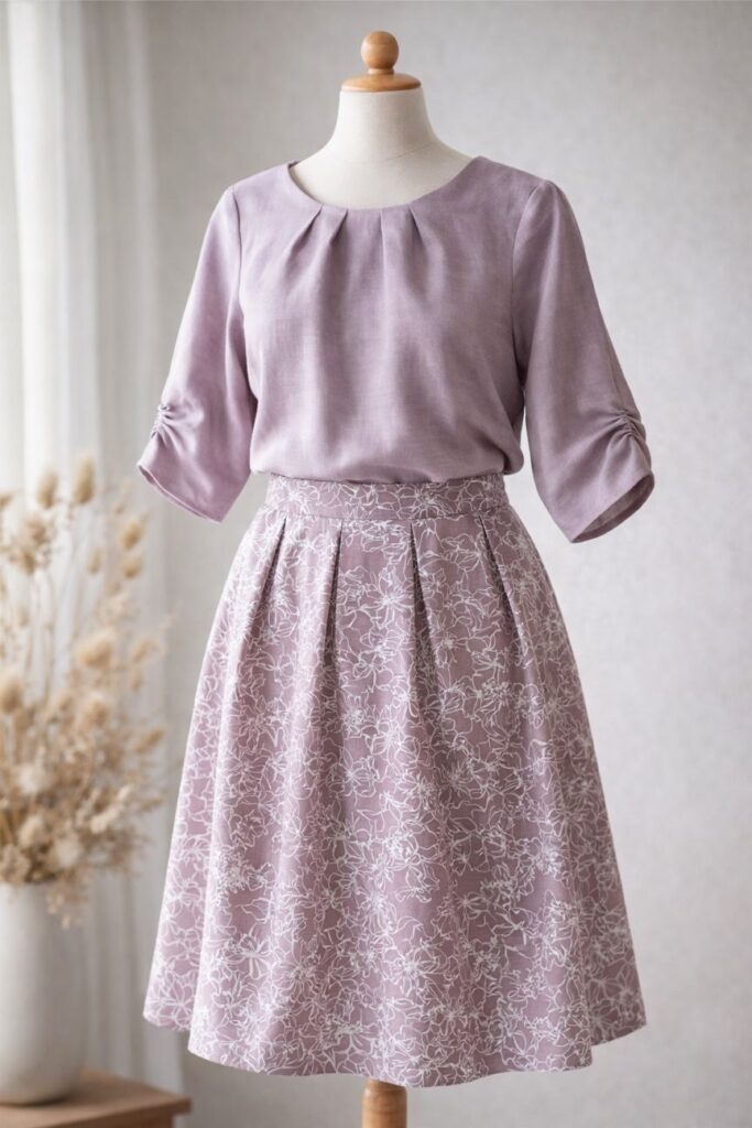 Aus unseren luftigen Halbleinen könnt Ihr Euch wunderschöne Bekleidungsstücke nähen. Wie wäre es zum Beispiel mit dem Rock „Frida“ und der Bluse „Maddou“ von Sewsimple?